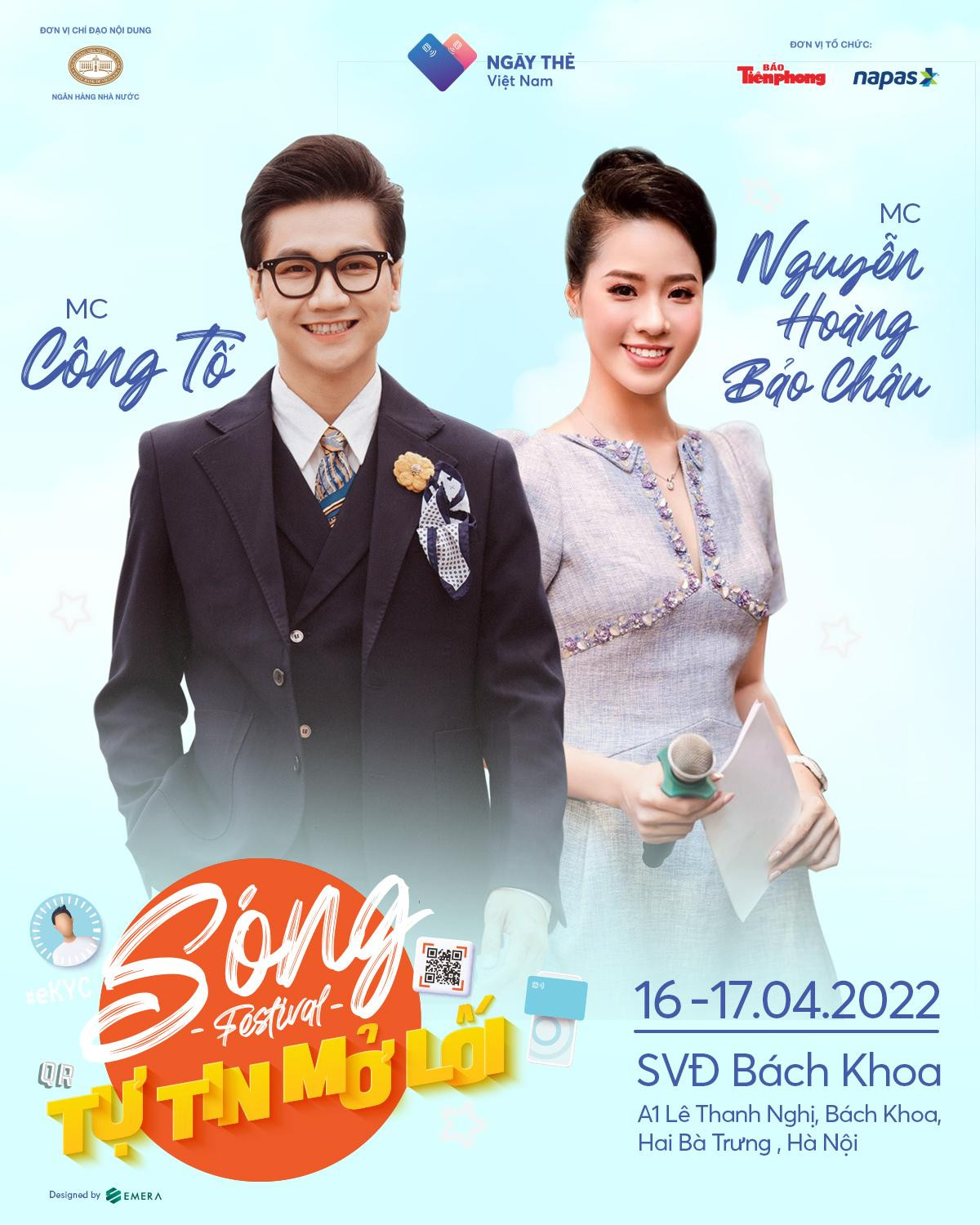 Bên cạnh những giọng ca, người đẹp, Ngày thẻ Việt Nam lần thứ 2 - 'Sóng Festival' còn có sự xuất hiện của những gương mặt trẻ trung và được yêu mến trong vai trò MC là Công Tố và Nguyễn Hoàng Bảo Châu - Người đẹp biển HHVN 2018.