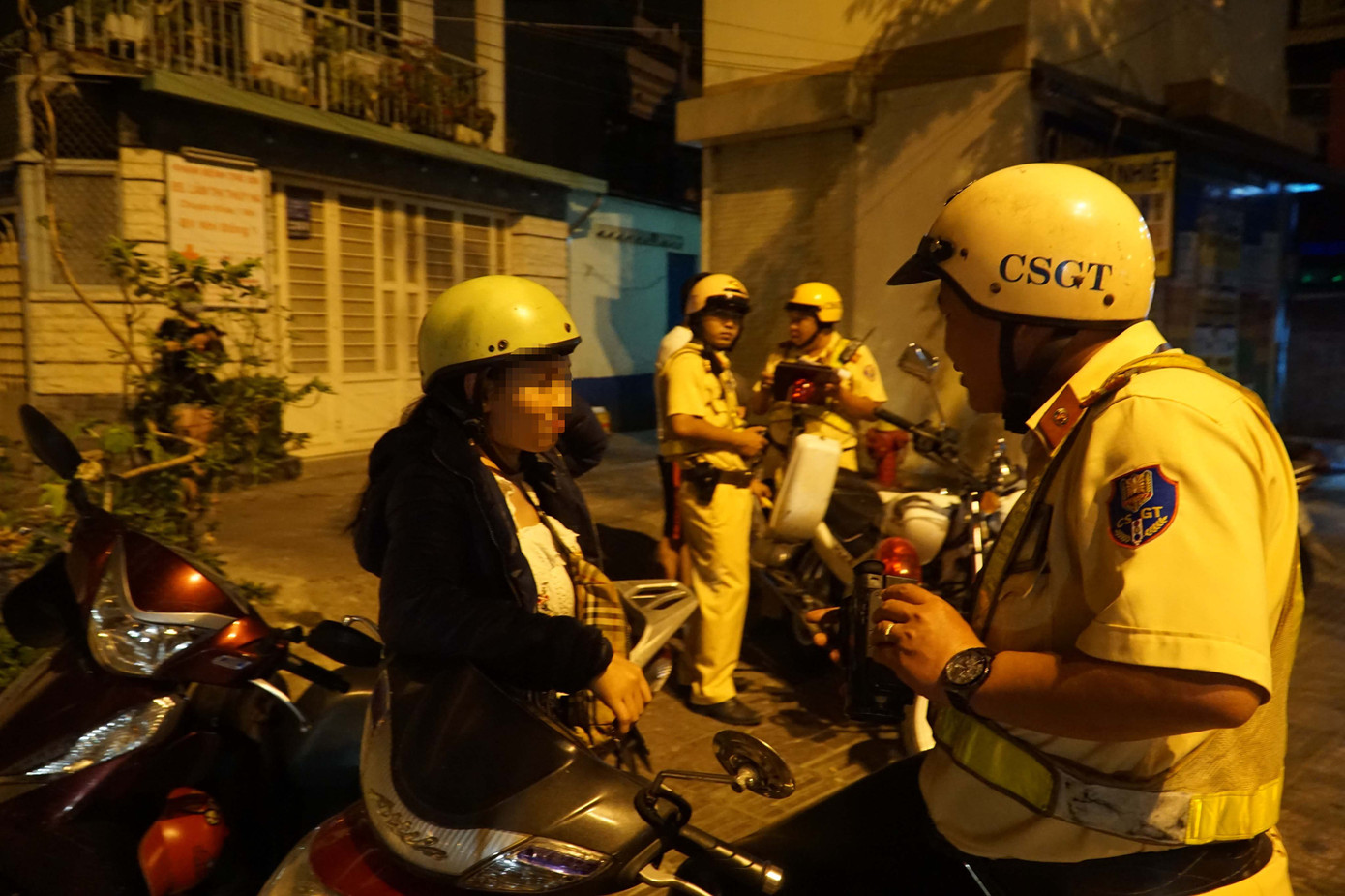 Tối 2/1, Tổ công tác Đội CSGT tuần tra dẫn đoàn thuộc Phòng CSGT đường bộ - đường sắt (PC08), Công an TPHCM lập chốt đảm bảo an toàn giao thông trên địa bàn.