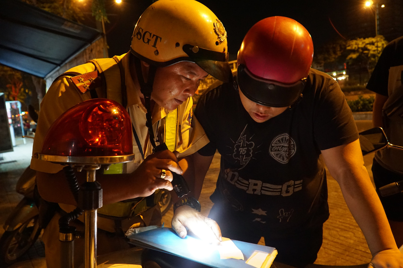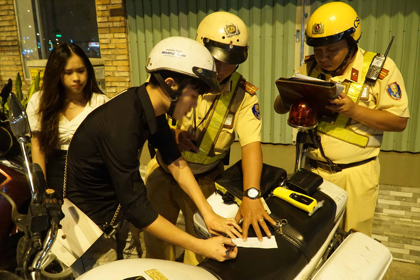 Lực lượng CSGT phải dùng xe chuyên dụng truy đuổi buộc dừng xe kiểm tra và phát hiện thanh niên điều khiển phương tiện có nồng độ cồn 0,23mg/lít khí thở. Với kết quả này, thanh niên bị lập biên bản xử phạt từ 2-3 triệu đồng, giữ xe 7 ngày.