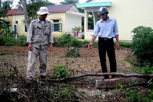 Vị trí phát hiện quả đạn pháo cách lớp học khoảng 10 mét. Ảnh: Quang Hà/ VnExpress