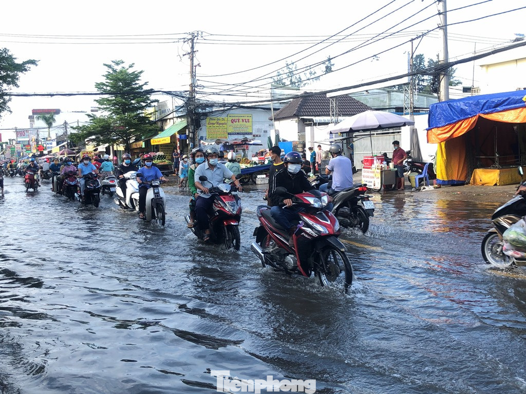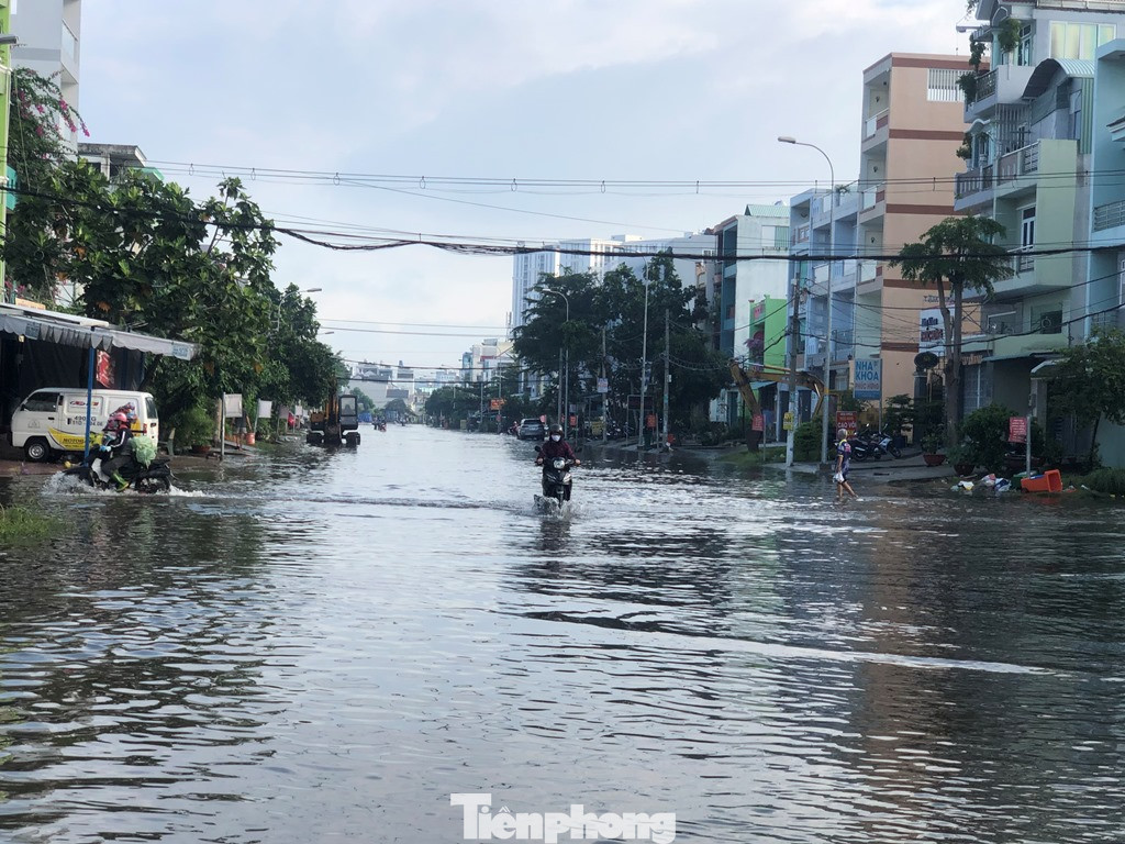 Đài Khí tượng Thủy văn khu vực Nam bộ cho biết, trong đêm qua, TP.HCM đã hứng trận mưa to kỷ lục chưa từng có trong lịch sử. Trong ảnh: Khu dân cư Nam Hùng Vương (phường An Lạc, quận Bình Tân) sáng nay, vẫn là biển nước mênh mông