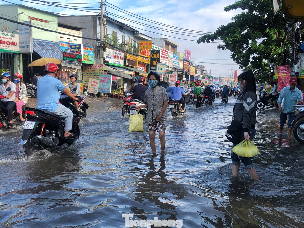 Anh Bình (ngụ quận 6, TPHCM) than thở: "Đêm qua gần 1 giờ sáng mới về tới nhà. Sáng nay đi làm cũng phải lội bì bõm trong dòng nước