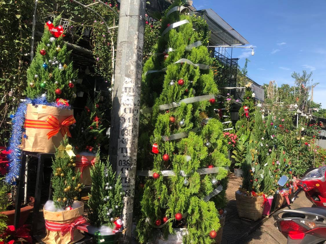 Cây được trang trí với quả châu nhiều màu, ngoài việc mua về chưng trong nhà, nhiều người còn chọn sản phẩm làm quà tặng dịp Giáng sinh
