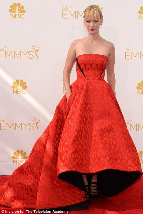 Diễn viên truyền hình Mỹ Christina Hendricks khoe đường cong với đầm đỏ Marchesa.