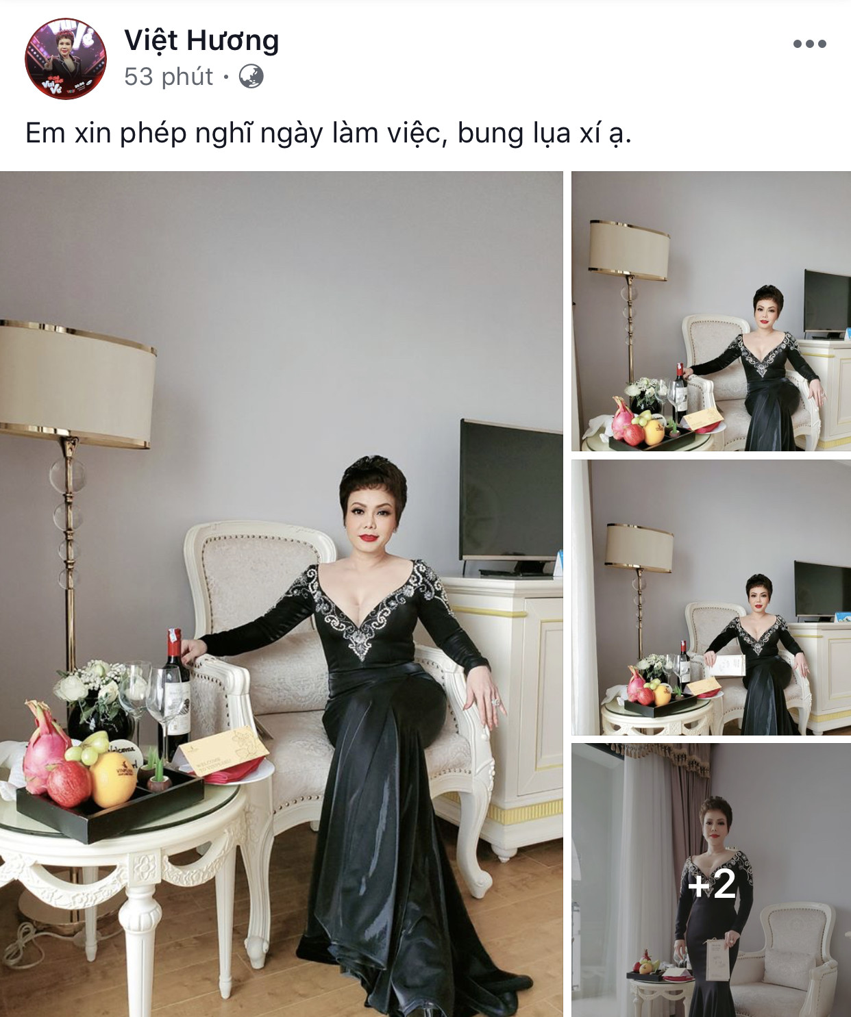Việt Hương diện đầm đen với thiết kế cắt xẻ khoe vòng 1.