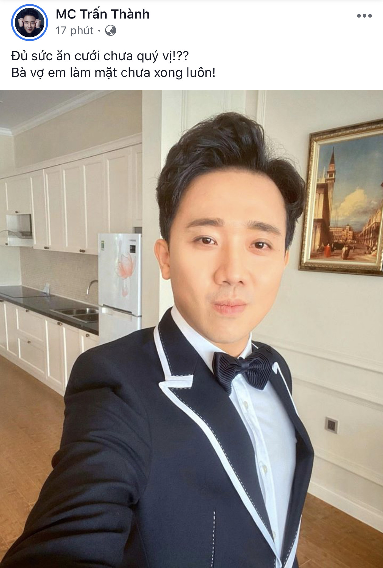 Trấn Thành tranh thủ check-in trong khi đợi bà xã Hari Won make-up.