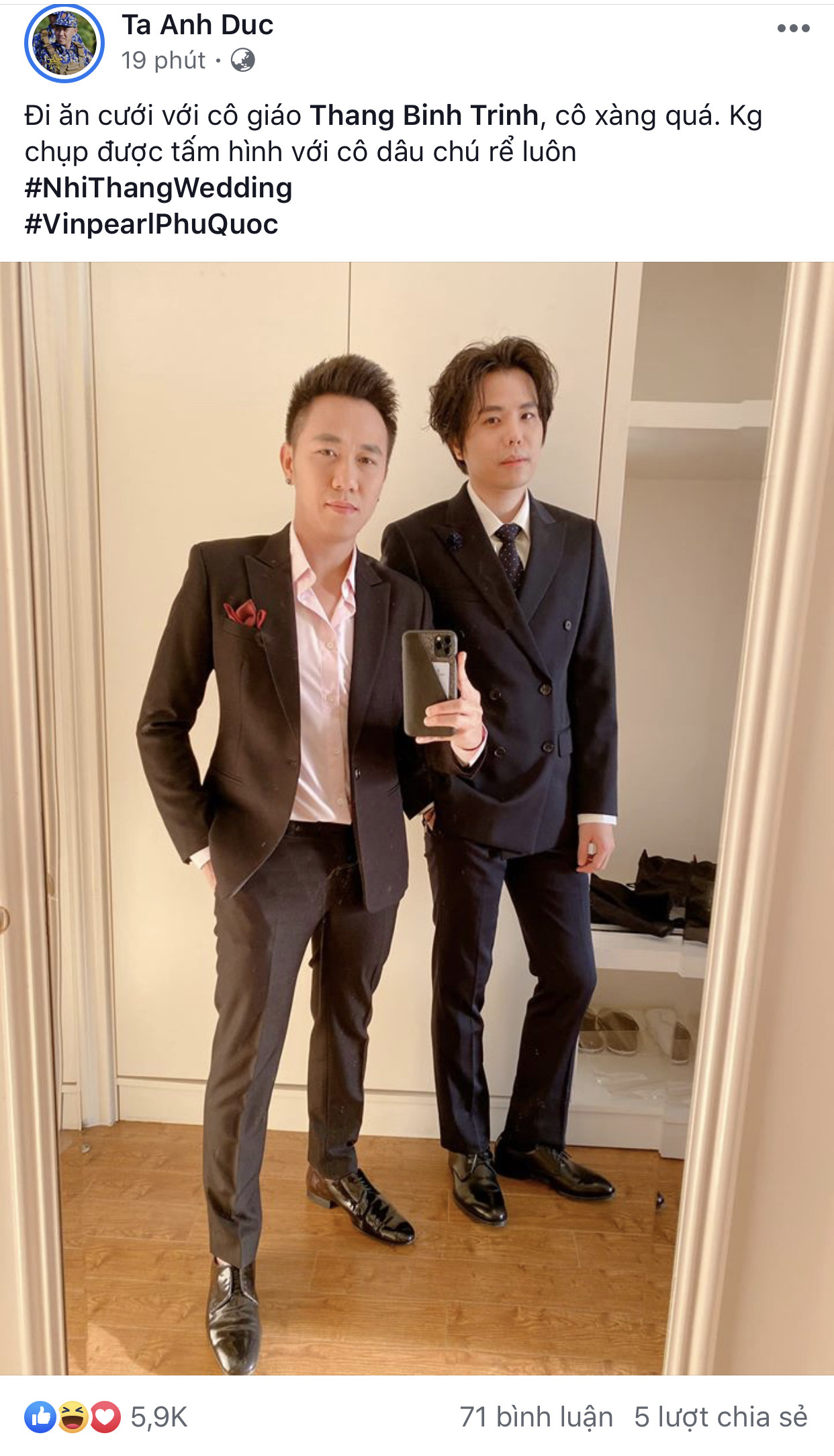 Dàn sao 'khủng' đổ bộ 'siêu' đám cưới Đông Nhi-Ông Cao Thắng ảnh 13  Ca sĩ Trọng Hiếu khoe ảnh selfie cùng nhạc sĩ Huy Tuấn ở đám cưới Đông Nhi
