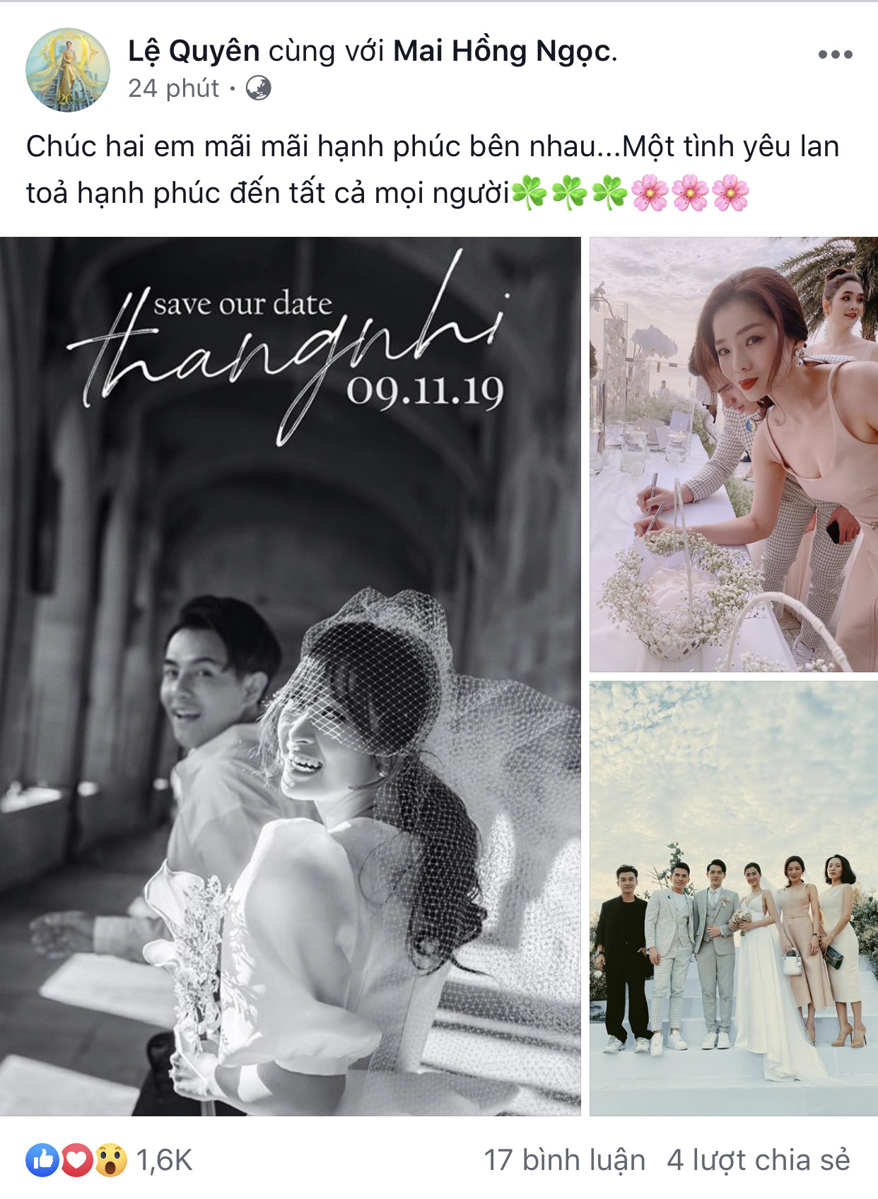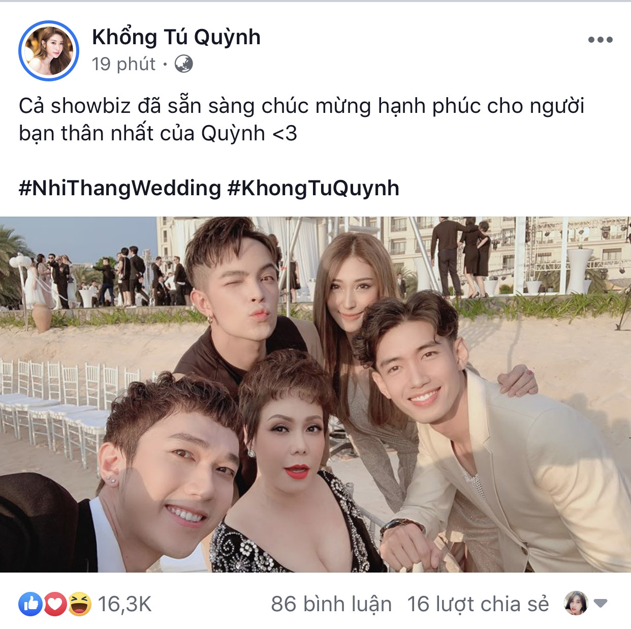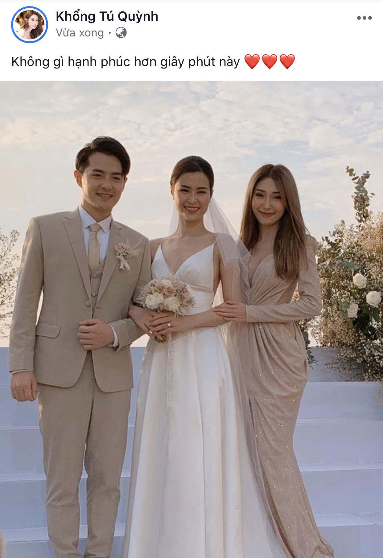 Khổng Tú Quỳnh liên tục cập nhật hình ảnh tại đám cưới trên trang cá nhân.