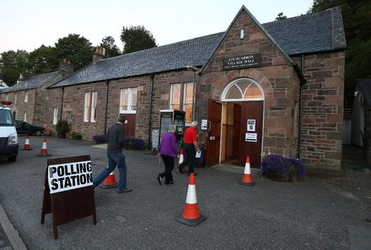 Những cử tri tới điểm bỏ phiếu trong một hội trường tại một ngôi làng xa xôi của Lochcarron.