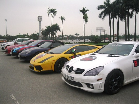 Trong các ngày 22 và 23-4, một dàn siêu xe hạng sang mang biển kiểm soát TP HCM đã bất ngờ hội tụ tại quảng trường trước Sân vận động Quốc gia Mỹ Đình (Hà Nội). Trước đó, hình ảnh những chiếc xe biển số TP HCM được vận chuyển ra Hà Nội đã xuất hiện trên mạng. Đoàn xe gồm 15 chiếc, trong đó phần lớn là xe thể thao 2 cửa.