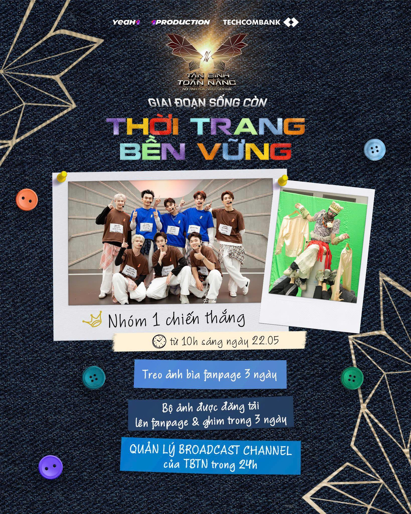 Không chỉ là đội duy nhất an toàn qua vòng sát hạch trong tập 5 Tân Binh Toàn Năng, Team 1 gồm những thành viên như Minh Quân, Gia Khiêm, Văn Liêm, Duy Lân,... còn “bội thu” thành tích khi giành giải nhất trong thử thách thời trang bền vững - một hoạt động vui nhộn diễn ra tại ký túc xá nhằm gắn kết tình anh em của Top 30.