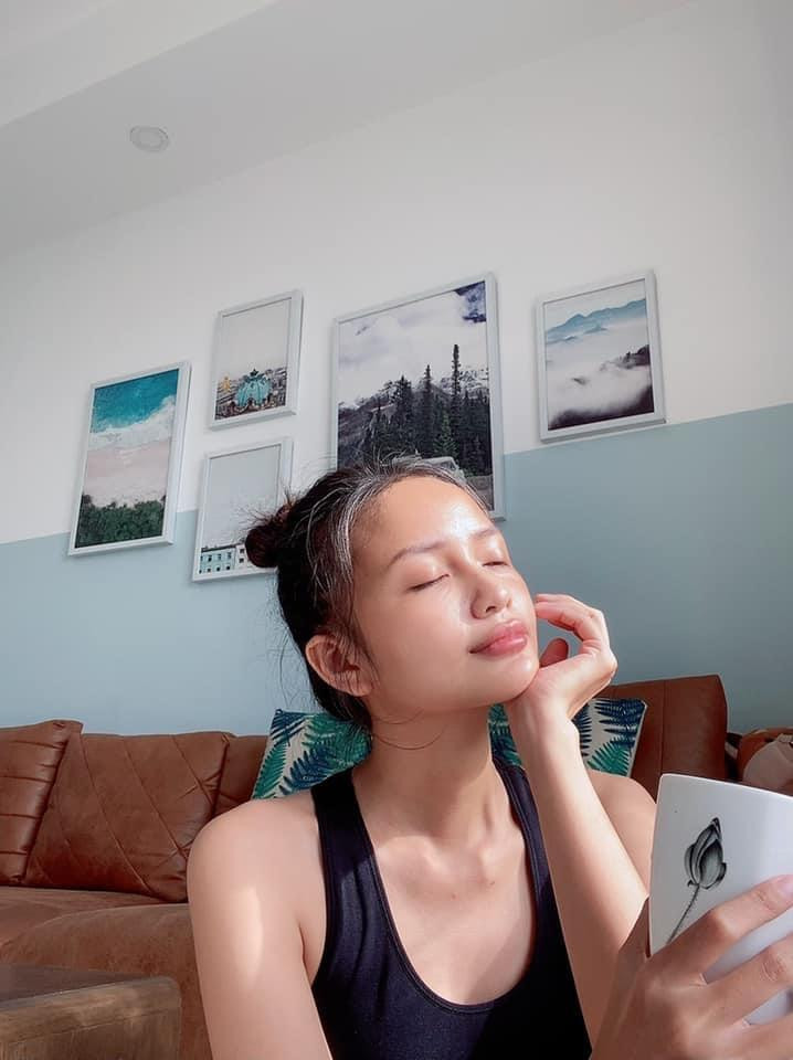 | Mặt mộc rạng rỡ của Hoàng Phương khi chụp ảnh bằng cam thường |