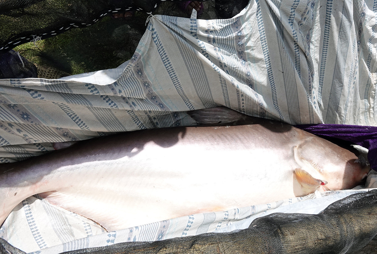 | Cá tra dầu được xem là "thủy quái" sông Mê Kông. |