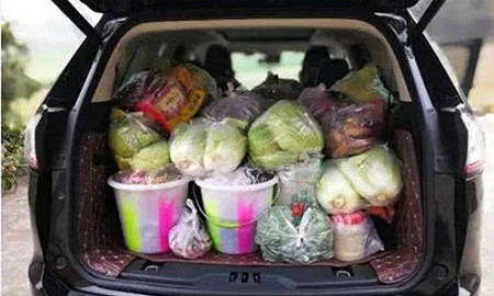 Ngoài ra, một trang mạng Trung Quốc chia sẻ lại những bức ảnh về việc bố mẹ chất đầy quà quê lên ô tô cho con mang ra thành phố khiến nhiều người xúc động. Ảnh: Weibo