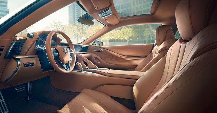 Nội thất của LC500 xứng đáng với vị thế hạng nhất của nó. Ở bên trong, người lái được chào đón bằng một cabin rộng rãi đáng ngạc nhiên, cùng tay nghề chế tác thủ công hoàn hảo. Thêm vào đó, nội thất của nó có nhiều vật liệu thể thao như da, nhôm, và thậm chí cả sợi carbon. Bảng điều khiển được thiết kế theo phong cách thanh lịch đi cùng với chi tiết làm bằng da rất dễ chịu và mềm mại. Màn hình đa phương tiện LCD màu 10,3 inch ấn tượng và hệ thống âm thanh 12 loa đẳng cấp thế giới là những điểm thu hút chính của cabin.