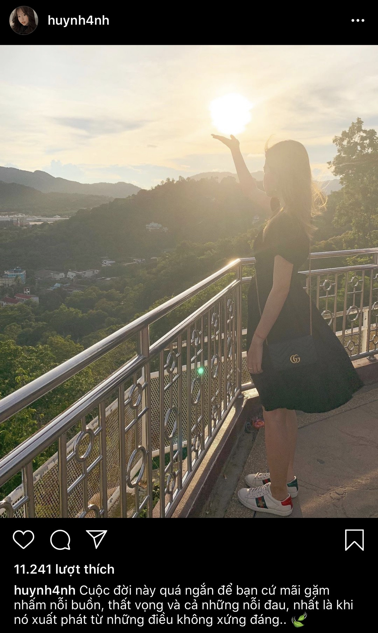 Tuy nhiên, đáng nói là chỉ khoảng nửa tiếng sau, Huỳnh Anh đã xóa bức ảnh này và thay bằng ảnh cá nhân. Tiếp đó, cô đăng với dòng trạng thái đầy tâm trạng: “Cuộc đời này quá ngắn để bạn cứ mãi gặm nhấm nỗi buồn, thất vọng và cả những nỗi đau, nhất là khi nó xuất phát từ những điều không xứng đáng”.