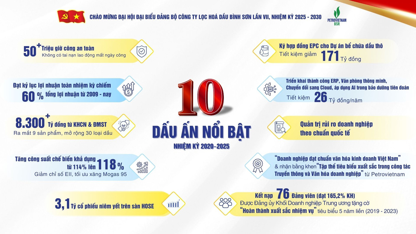 Bước sang nhiệm kỳ 2025–2030, với khát vọng trở thành Tổng Công ty Lọc hóa dầu hàng đầu, hạt nhân của trung tâm năng lượng quốc gia, BSR kiên định mục tiêu phát triển bền vững, chuyển đổi số, chuyển đổi xanh và chuyển đổi năng lượng – tiếp tục khẳng định vai trò tiên phong của Đảng bộ trong sự nghiệp phát triển ngành công nghiệp lọc hóa dầu Việt Nam.