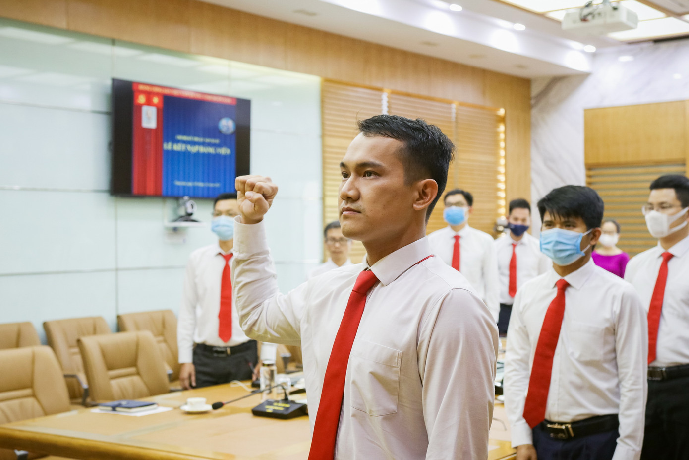 Đồng chí Nguyễn Đồng Tuấn đọc lời tuyên thề của đảng viên mới. Xúc động và tự hào, đồng chí Tuấn nói lên cảm tưởng của mình khi trở thành đảng viên Đảng cộng sản Việt Nam. Đồng chí hứa luôn phất đấu, rèn luyện tốt về phẩm chất, đạo đức cách mạng, chuyên môn, nghiệp vụ thật tốt, hoàn thành tốt mọi nhiệm vụ của Đảng và của Công ty giao cho, xứng đáng với niềm tin yêu của Chi bộ, của lãnh đạo và người lao động DAK, trở thành người đảng viên gương mẫu.