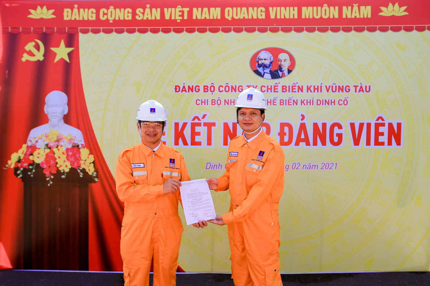 Sau quá trình nỗ lực, phấn đấu không ngừng, đồng chí Võ Phong Hải Bằng - chi bộ Nhà máy Chế biến Khí Dinh Cố và đồng chí Trần Hoài Nam - chi bộ Phòng Kỹ thuật Sản xuất đã vinh dự được đứng vào hàng ngũ của Đảng.