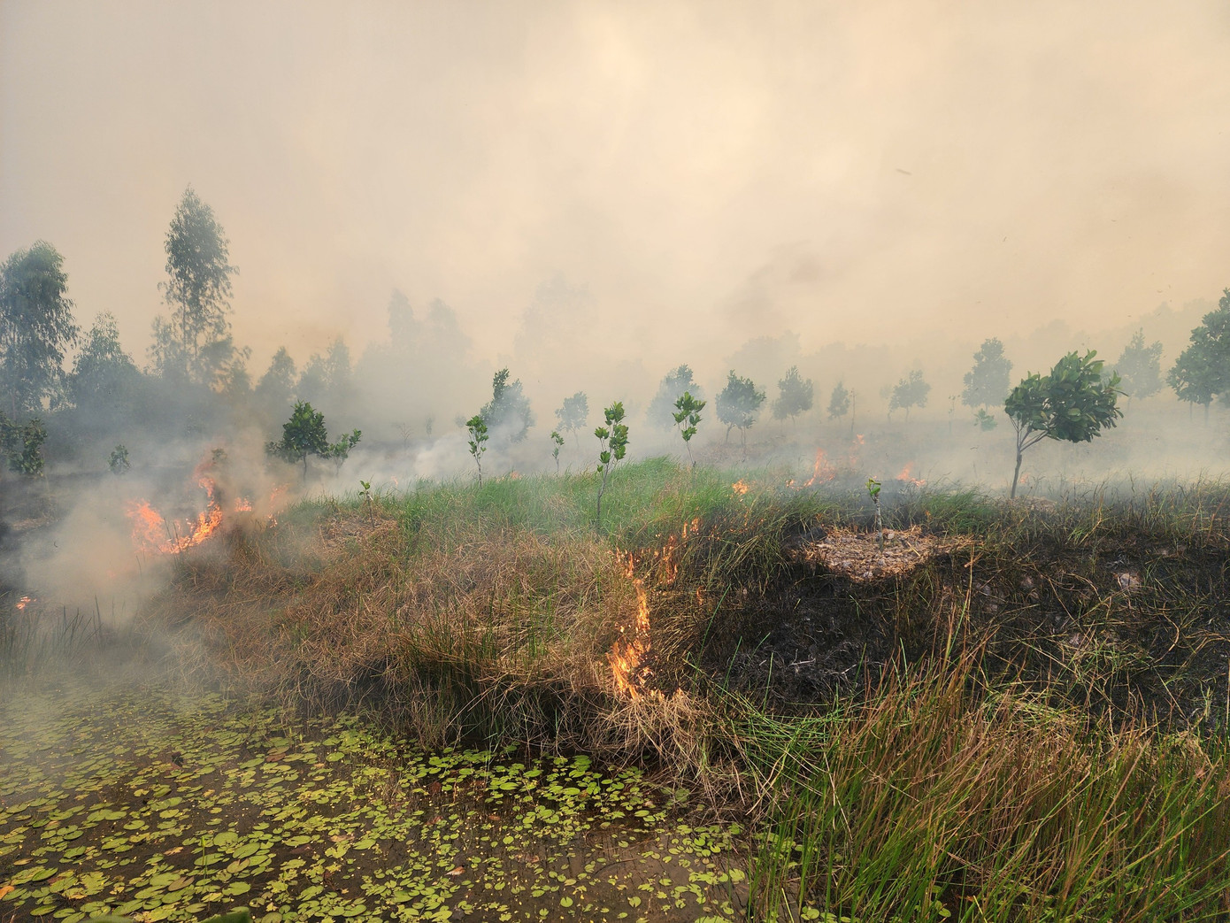 | Hiện trường vụ cháy tại Vườn Quốc gia Tràm Chim. |