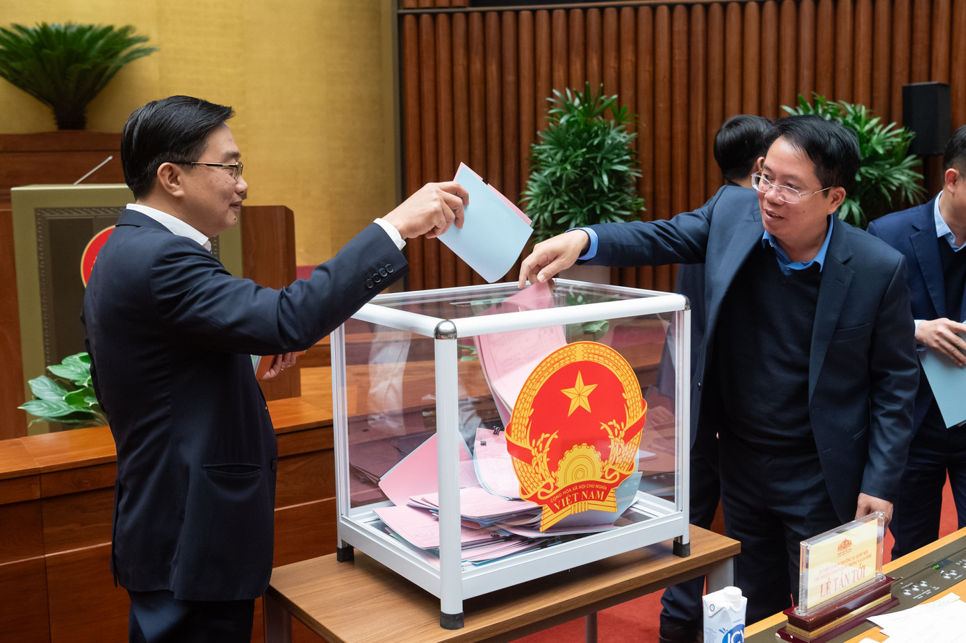 | Chủ tịch Quốc hội cùng các Phó Chủ tịch Quốc hội bỏ phiếu kín. Ảnh: Quốc hội |
