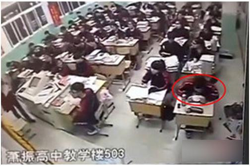 Tối 13.3, một lớp học ở trường cấp ba Tiêu Chấn (huyện Bình Dương, thành phố Ôn Châu, tỉnh Chiết Giang, Trung Quốc) bất ngờ xảy ra sự việc học sinh nhảy lầu tự tử khiến các bạn trong lớp choáng váng. Sự việc đã được camera trong phòng học ghi lại và được một người quay lại bằng điện thoại, đăng tải lên mạng.