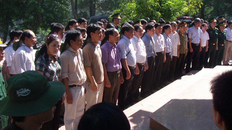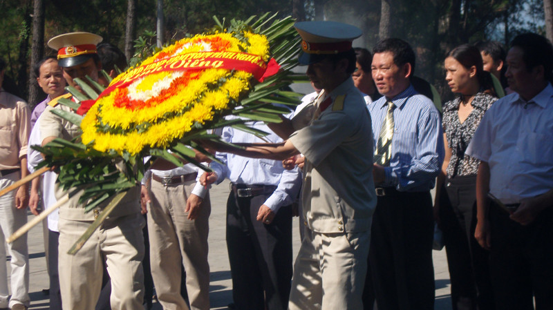 Phút mặc niệm trước phần mộ những người con quê hương Nghệ Tĩnh.