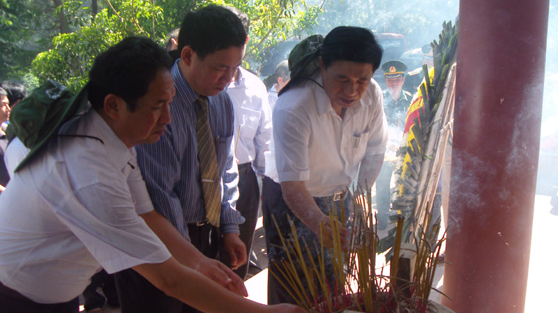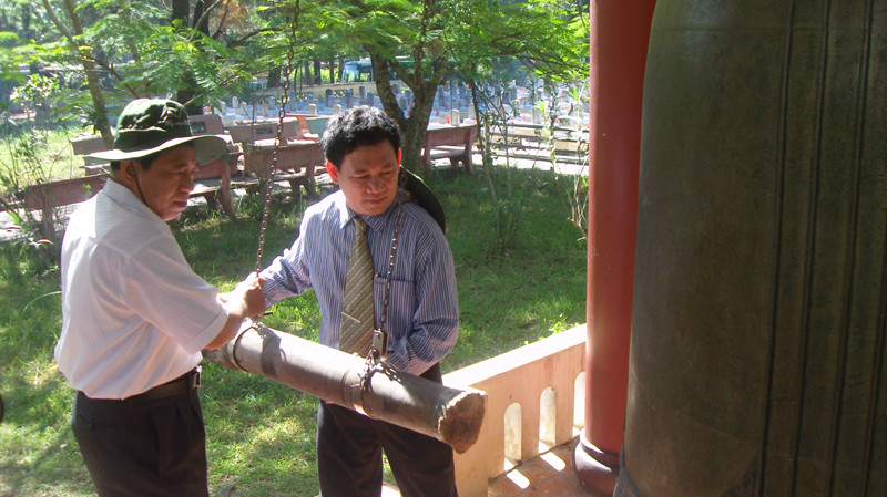 Chủ tịch tỉnh Hồ Đức Phớc và Phó Chủ tịch Nguyễn Xuân Đường thỉnh chuông tại Nghĩa trang Trường Sơn.