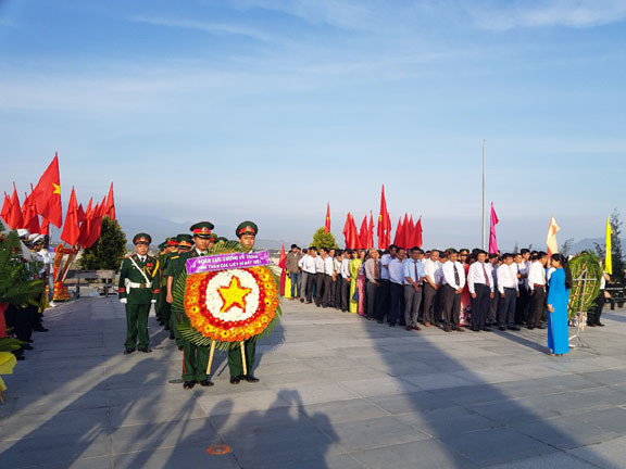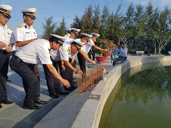 Lễ đặt vòng hoa và dâng hương tưởng niệm diễn ra với sự trang trọng, thành kính của các lực lượng vũ trang nhân dân, Đoàn thanh niên tỉnh. Các chiến sĩ hải quân khắc khoải nhớ về người đồng đội, lớp người đi trước đã hi sinh cho "Vòng tròn bất tử Gạc Ma".