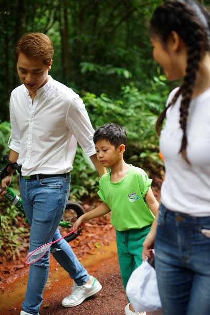 Tại đây, gia đình Đăng Khôi đã cùng nhau đi xe đạp thăng bằng trên quãng đường rừng 3km để tìm hiểu về các loại cây cối, côn trùng.