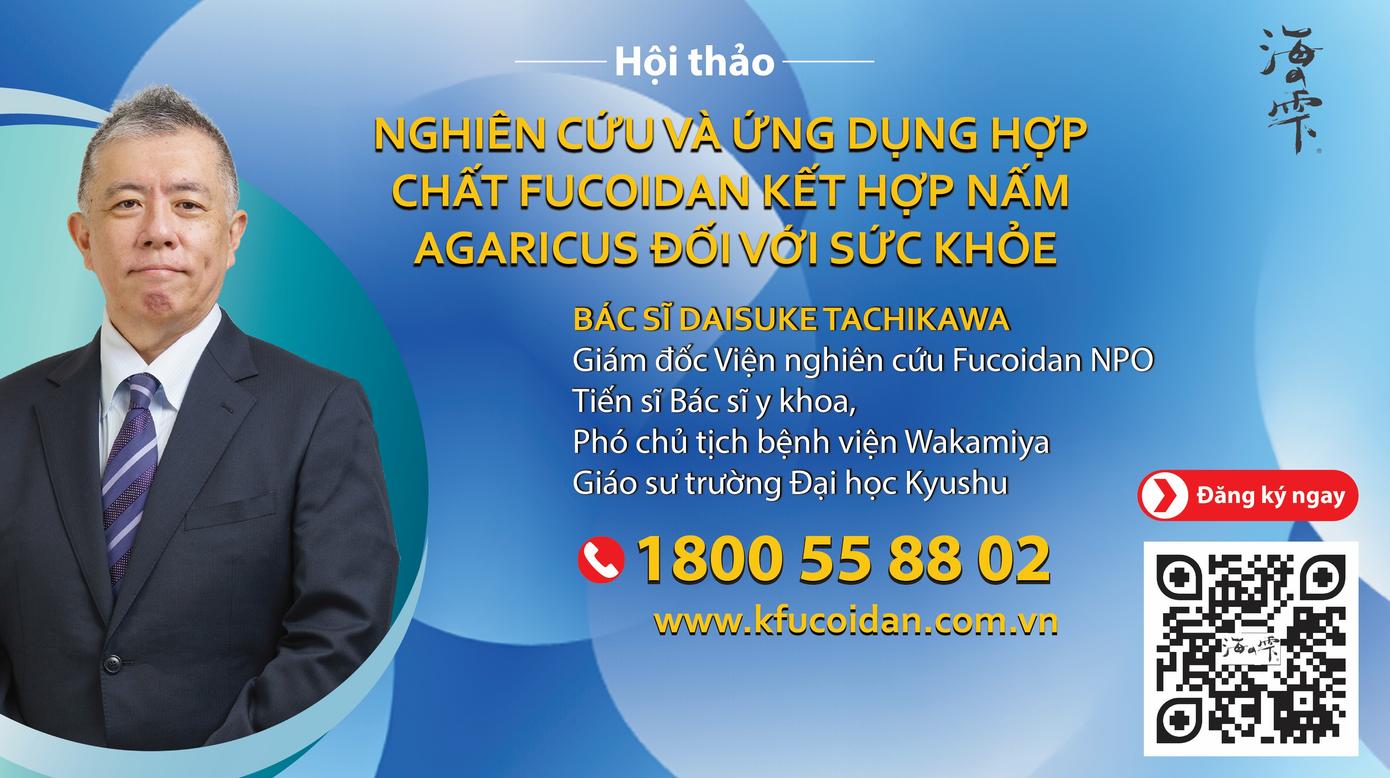 Để khách hàng có cơ hội tiếp cận với những thông tin về Fucoidan và các nghiên cứu khoa học từ chuyên gia, Công ty TNHH Umi No Shizuku sẽ tổ chức 2 buổi hội thảo tại Tp. Hồ Chí Minh và Đà Nẵng với chuyên đề: “NGHIÊN CỨU VÀ ỨNG DỤNG HỢP CHẤT FUCOIDAN KẾT HỢP NẤM AGARICUS ĐỐI VỚI SỨC KHỎE” với khách mời đặc biệt là Tiến sĩ – Bác sĩ Daisuke Tachikawa.