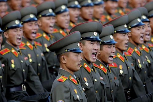 Hàng nghìn binh sĩ xếp hàng dọc tại quảng trường Kim Nhật Thành- nơi được đặt theo tên của nhà lập quốc Triều Tiên và là ông nội của nhà lãnh đạo Kim Jong-un.