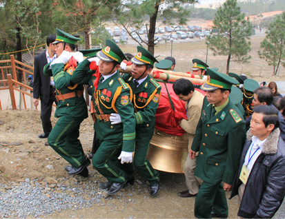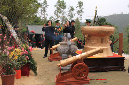 Ngay sau lễ cầu khấn là phần dâng bộ ba linh khí gồm trống đồng, kiếm lệnh, súng thần công của người dân xứ Thanh. Sau khi đoàn xe vận chuyển linh vật từ Thanh Hóa vào đến Vũng Chùa, các chiến sĩ bộ đội biên phòng Quảng Bình đã chuyển hiện vật lên lăng mộ Đại tướng nằm trên sườn núi mũi Rồng.