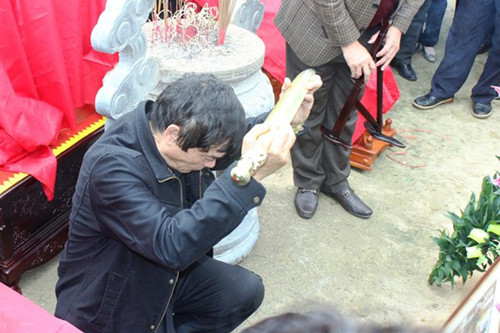 Do các hiện vật rất nặng, chỉ riêng chiếc trống đã có trọng lượng hơn 400kg nên việc di chuyển khá vất vả, cần tới hơn 10 người khiêng.