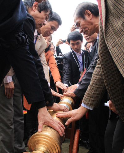 Tiếp đến là phần trao tặng súng thần công và trống đồng.