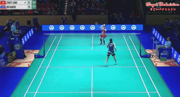 Ratchanok Intanon nỗ lực gỡ gạc lại điểm số nhưng càng đánh cô càng bị dẫn sâu. Đến khi bị gác điểm 12-20, Ratchanok Intanon hiểu rằng cô đã hết hy vọng. Thùy Linh chỉ hụt một matchpoint trước khi về đích set 1 bằng tỷ số 21-13.
