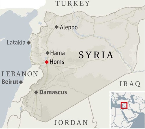 Vị trí thành phố Homs, Syria (chấm đỏ). Đồ họa: lahistoriaconmapas