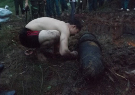 Gần 100 cán bộ, chiến sỹ, người dân cùng "hợp sức" đưa quả bom nặng 250kg lên bờ an toàn
