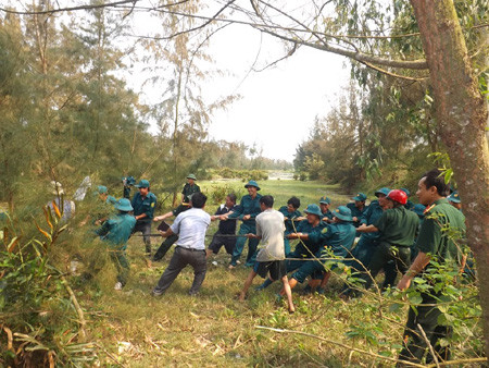 Chiều qua (11/4) gần 100 cán bộ chiến sỹ, công an, dân quân tự vệ, lãnh đạo địa phương đều tập trung tại khu vực sông Bắc Hải để tham gia trục vớt quả bom lên bờ.