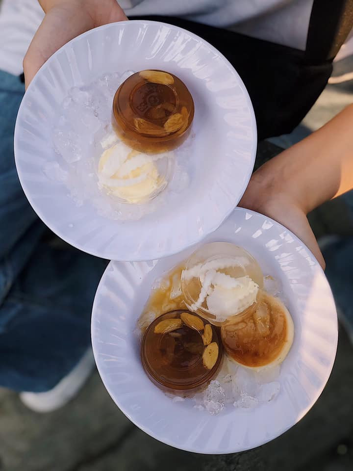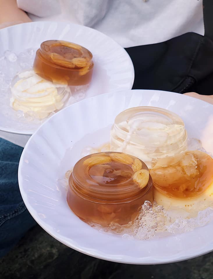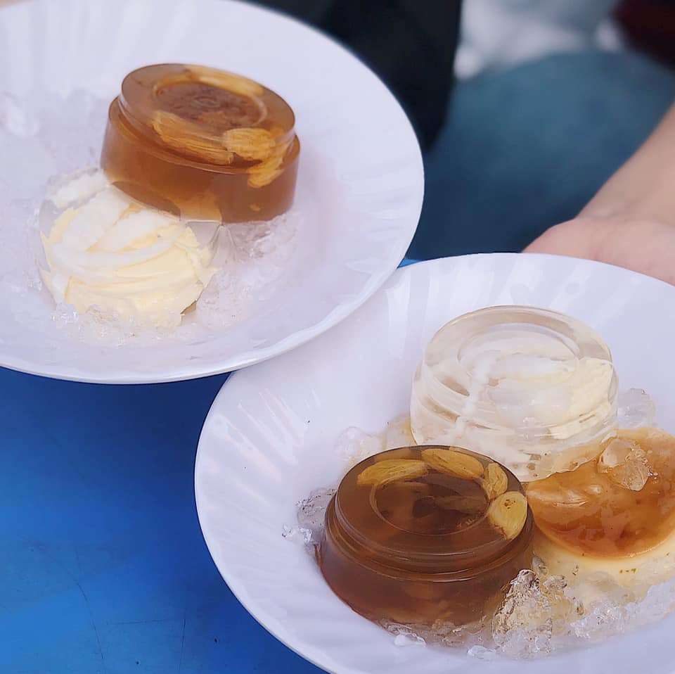 Ngoài bánh flan ăn khá ổn, thứ mình mê nhất ở đây là rau câu dừa phô mai. Thạch được làm từ nước dừa nên thanh mát, vị dừa đậm rõ, nhân cơm dừa sực sực cực hợp với vị phô mai béo. Ngoài ra rau câu nhãn và nho khô cũng đáng để thử lắm à! Bạn chú ý nè: Ăn bánh flan ở đây nhất định phải bỏ nước cốt dừa nghen. Cô chủ quán pha nước cốt dừa siêu đỉnh luôn!