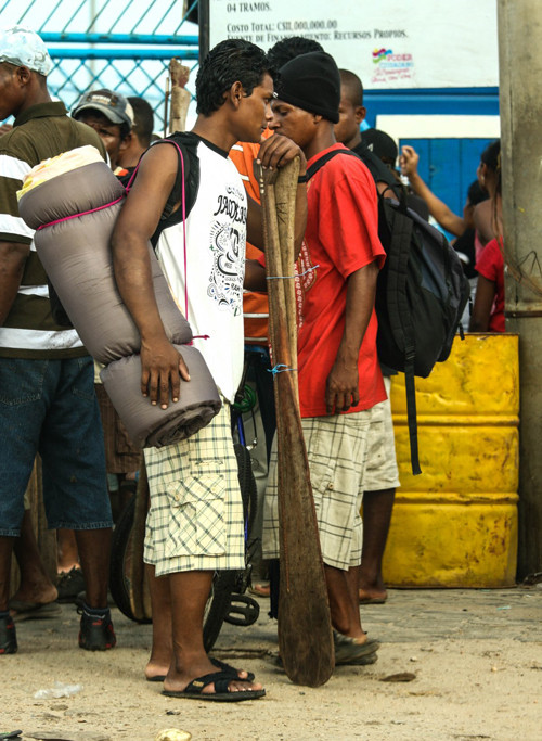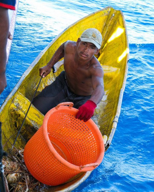 Thợ lặn và thợ phụ mang theo dụng cụ đang chờ gọi tên lên thuyền ở Puerto Cabezas. Nếu không được gọi nghĩa là họ phải đợi thêm hai tuần nữa mới tới lượt đi biển. Những chuyến đi phụ thuộc rất nhiều vào thời tiết, giá xăng dầu và cả những cuộc biểu tình tăng lương.