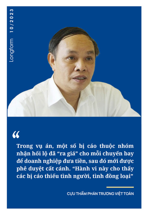 Nhắc đến vụ án đặc biệt nghiêm trọng, liên quan đến cán bộ nhiều bộ, ngành từ Trung ương đến địa phương, cựu thẩm phán Trương Việt Toàn cho rằng, vụ “chuyến bay giải cứu” phơi bày một phần thực trạng của không ít cán bộ có chức, có quyền hiện nay. Các bị cáo đã làm phức tạp hóa vấn đề, gây nhũng nhiễu khiến doanh nghiệp buộc phải làm theo cơ chế “xin cho”, dù cơ chế này đã bị xóa bỏ từ lâu.