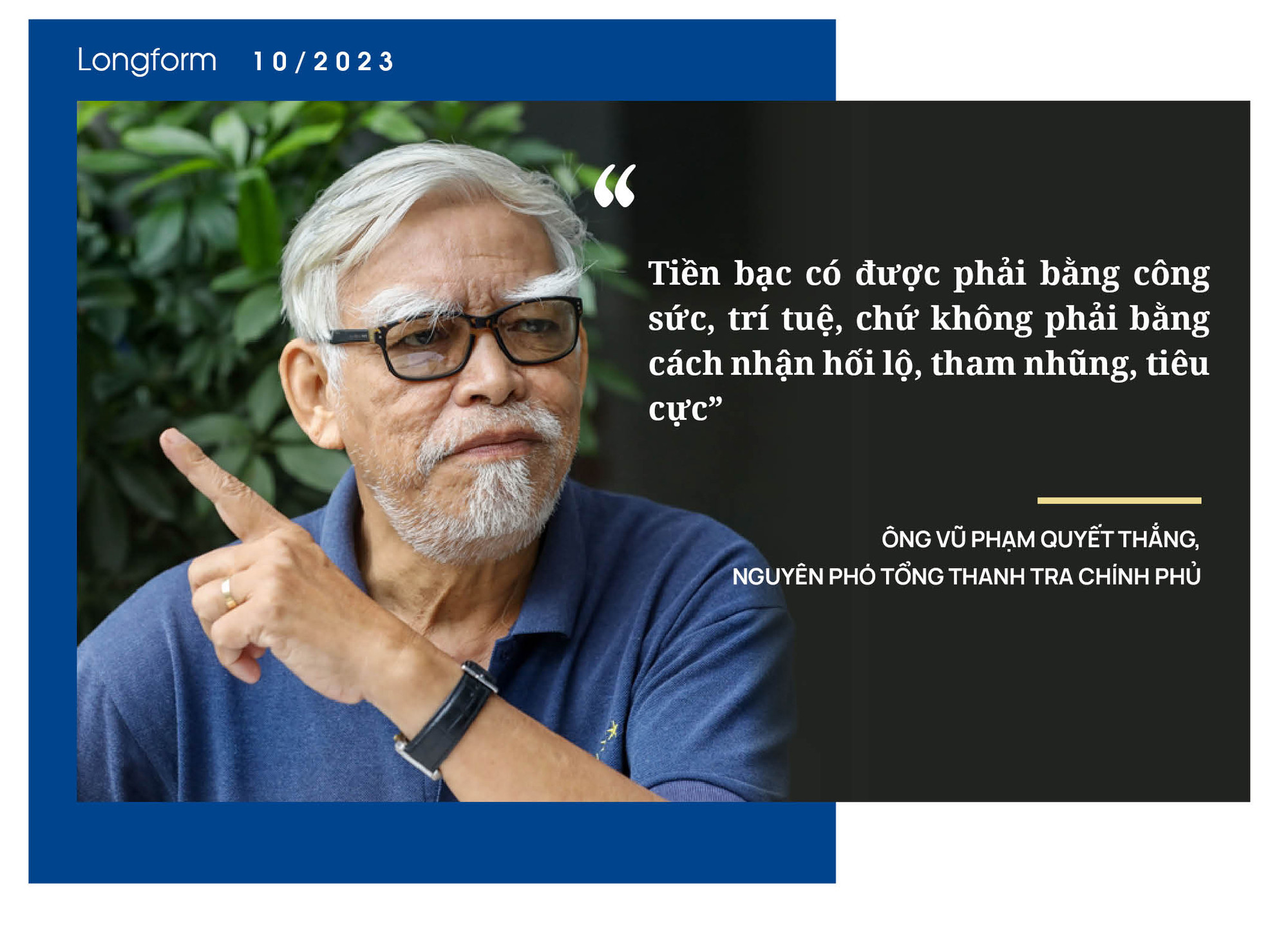 Nói về tình trạng tham nhũng, tiêu cực xảy ra trong đội ngũ cán bộ, ông Vũ Phạm Quyết Thắng, nguyên Phó Tổng Thanh tra Chính phủ cho rằng, tham nhũng là quy luật tất yếu của quá trình phát triển, bắt nguồn từ lòng tham con người không được kiềm chế. “Ai cũng có lòng tham cả, tôi cũng thích tiền, thích nhà cửa, đất đai, nhưng thích như thế nào, làm sao có lại là vấn đề khác”, nguyên Phó Tổng Thanh tra Chính phủ nói.