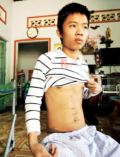 Anh Thành được Bệnh viện Bà Rịa chẩn đoán bị "đau nửa bụng bên trái, mắt sưng tấy, bụng trướng, ổ bụng xuất hiện dịch, chấn thương lá lách..., sau đó chuyển lên Bệnh viện Chợ Rẫy (TP HCM). Sau gần một tháng điều trị, anh được các bác sĩ cắt bỏ đuôi tủy, cắt bỏ lá lách, với giám định tỷ lệ thương tật là 59%. Hiện anh được chăm sóc tại nhà nhưng sức khỏe bị giảm sút, thường xuyên bị sốt và đau bụng.