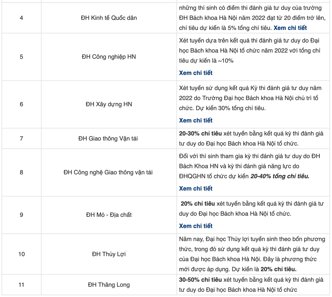 Kỳ thi đánh giá tư duy năm 2022 của trường ĐH Bách khoa Hà Nội dự kiến diễn ra trong một ngày ở 4 tỉnh, thành. So với lần đầu tổ chức vào năm 2020, (năm 2021 hoãn do dịch) kỳ thi đánh giá tư duy năm 2022 của trường ĐH Bách khoa Hà Nội sẽ mở rộng quy mô, sẽ có yếu tố phân loại cao hơn, nhiều thách thức hơn với thí sinh so với kỳ thi tốt nghiệp THPT.
