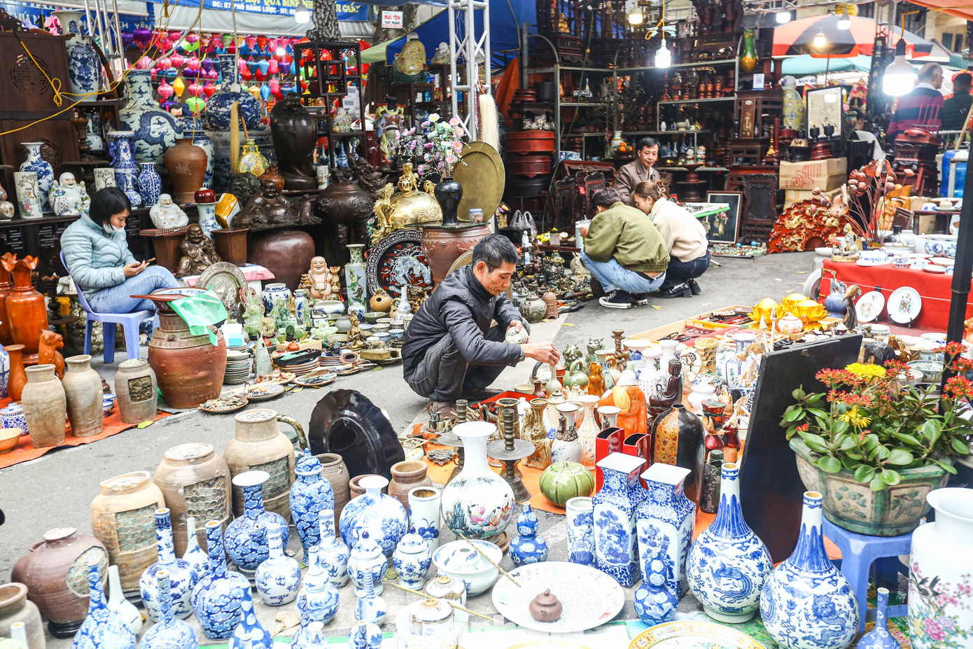 | Chợ "đồ cổ" này mỗi năm chỉ họp một lần vào dịp giáp Tết, bày bán đồ cũ, đồ giả cổ, đồ xưa, sản phẩm thủ công mỹ nghệ, sản phẩm làng nghề truyền thống. |