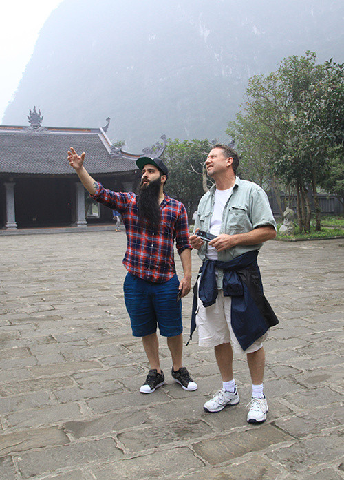 Hành trình khám phá Tràng An được diễn ra sáng 17/1. Dù đã ghi hình ở đây và quay lại hai lần nhưng chuyến đi này đạo diễn người Mỹ vẫn tỏ ra rất hứng thú.