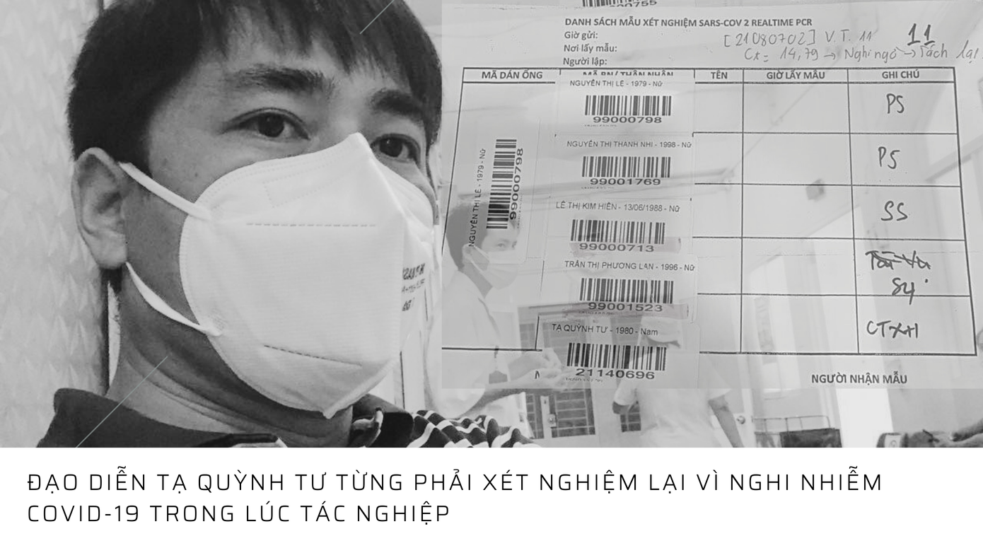 - Câu chuyện này xuất phát từ việc 3 đến 5 ngày tôi phải test PCR 1 lần. Có một lần tôi test cùng với một nhóm 5 người, trong đó có cả các y bác sĩ. Sáng xét nghiệm thì chiều tôi được báo xét nghiệm lại lần nữa, và tôi là một trong 3 người có nguy cơ nhiễm bệnh cao nhất. Lúc đó, tôi không lo lắng nhiễm bệnh mà chỉ lo không thể hoàn thành phim, nếu quay chưa xong thì đành phải vào khu cách ly và đành thay đổi phim đi theo hướng khác. Hôm sau xét nghiệm lại thì tôi nhận kết quả âm tính, nhưng đáng tiếc hai người còn lại trong nhóm thì dương tính.