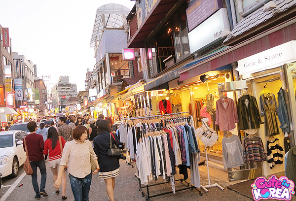 Khu vực Hongdae là thiên đường mua sắm cho những cô nàng nữ tính. Trang phục ở đây tiện dụng và rất thời trang. Bạn có thể tìm cho mình bộ cánh ưng ý khi đến trường, đi chơi hay lúc hẹn hò.