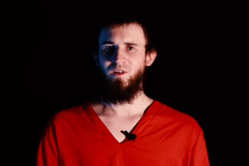 Nạn nhân xuất hiện trong bộ đồ màu cam, quỳ gối và tự giới thiệu tên là Magomed Khasiyev, 23 tuổi, đến từ Cộng hòa Chechnya thuộc Nga. Anh này nói rằng cơ quan an ninh Nga đã ép anh đến Syria để làm gián điệp.